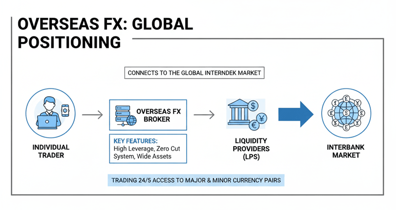 海外FXとは、日本国外に拠点を置くFX業者が提供する外国為替証拠金取引サービスの総称です。